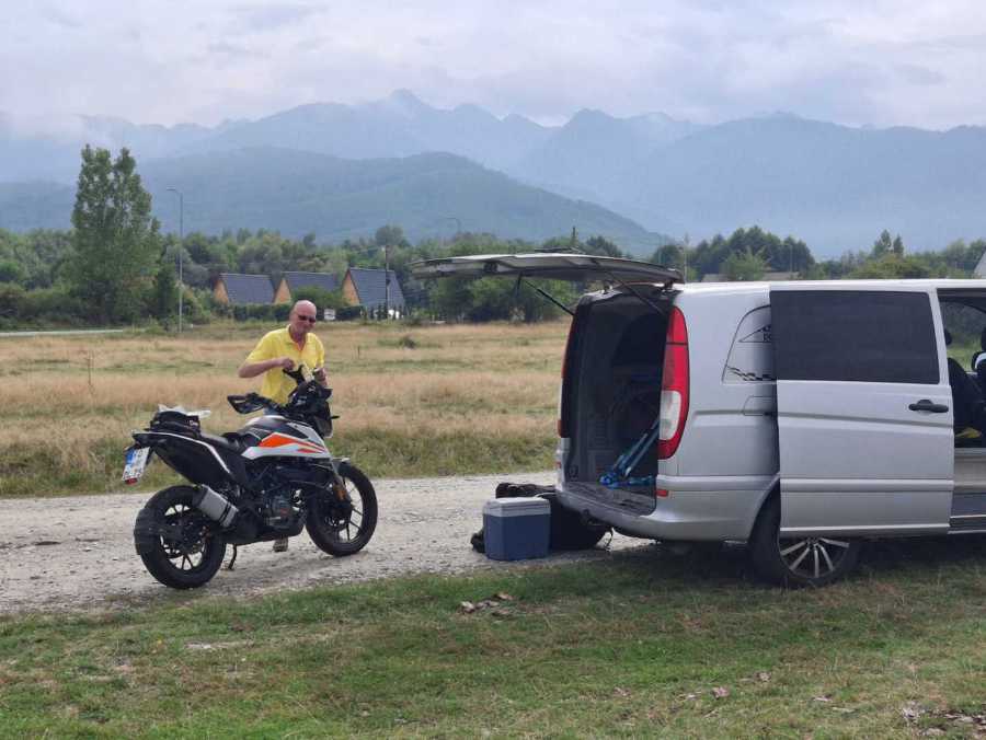 Während Heiko mit dem Motorrad unterwegs ist, fährt Axel in Heikos Mercedes Vito, beladen mit Heikos kleiner KTM Enduro für gemeinsame kleinere Ausflüge und Axels E-Bike für seine großen Fahrradtouren. Das klingt vielversprechend!