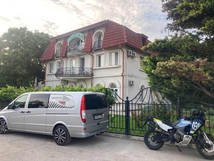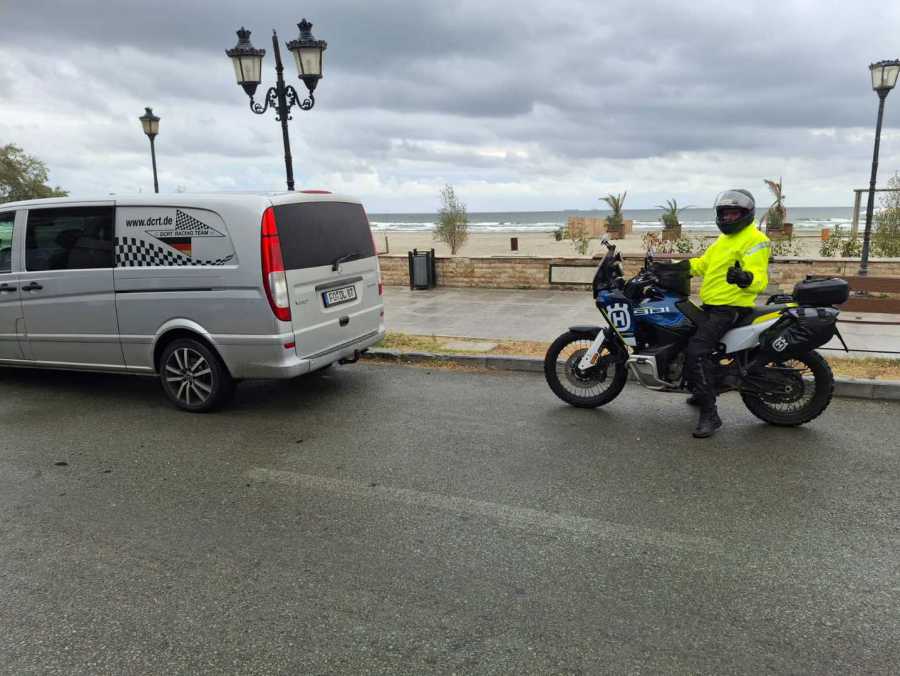 Heute stand ein Ausflug nach Moldawien auf dem Programm. Es war sehr spannend, denn an der Grenze wurde scharf kontrolliert! Die KTM durfte nicht im Vito transportiert werden, sondern musste auf Achse fahren. Nach einer Weile waren die beiden Freunde fast in der Ukraine. Anschließend ging's zurück nach Rumänien und nach mittlerweile 2.200 km erreichten sie Konstanza am Schwarzen Meer. Dort beendeten sie den Tag.
